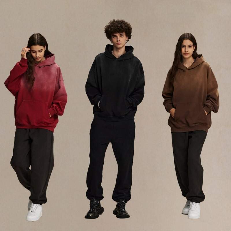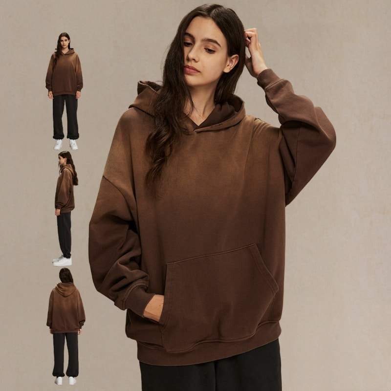 This 450g heavyweight distressed hoodie is crafted from premium cotton fabric, offering a thick, structured feel with excellent warmth and durability. Featuring a vintage washed finish, the hoodie delivers an authentic worn-in look, enhanced by carefully designed ripped and distressed details for a bold streetwear aesthetic.