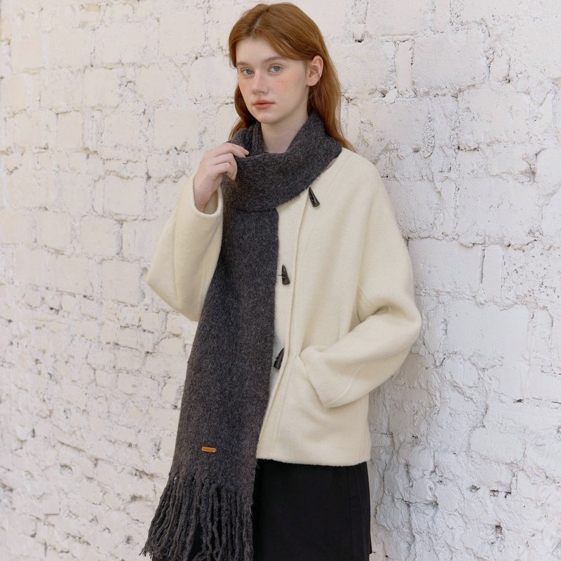This black and white tassel knit neck warmer is made of soft yarn, offering warmth and comfort in winter. The classic black and white color combination is versatile, while the tassel details add a stylish touch. Snug-fitting around the neck, it’s perfect for daily wear and commuting during cold weather.