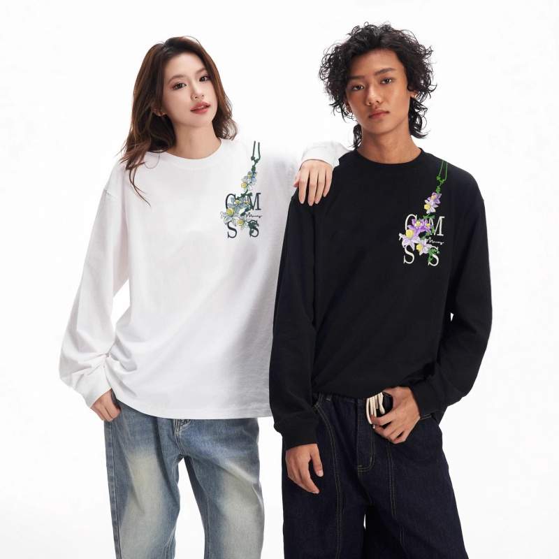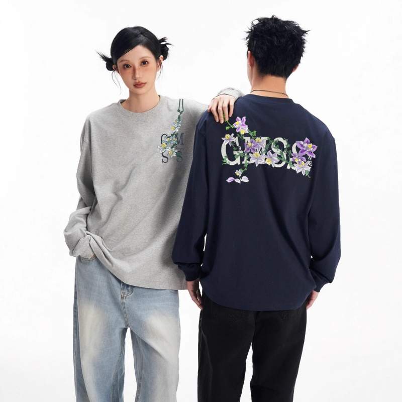 Embroidered Cotton Long Sleeve T-Shirt – Spring Loose Fit Women’s Casual Top
