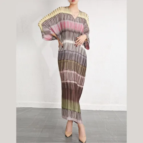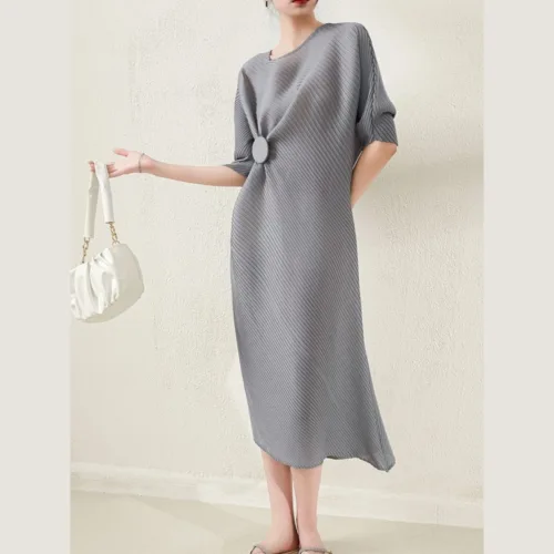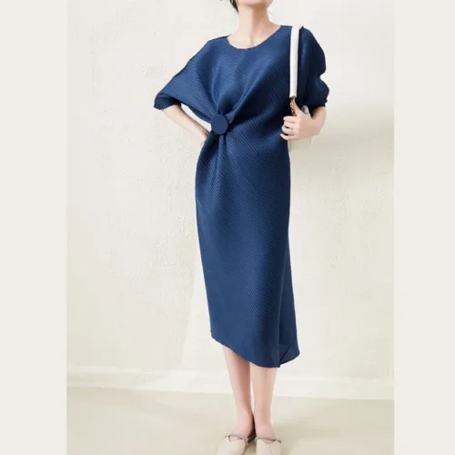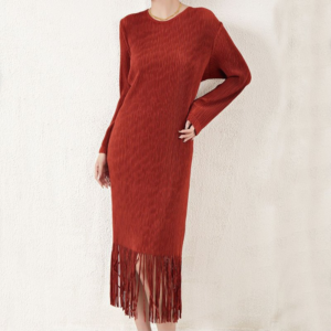 Factory Customized Women’s Spring and Autumn Style Hem Tassel Pleated Long Sleeve Round Neck Loose Dress