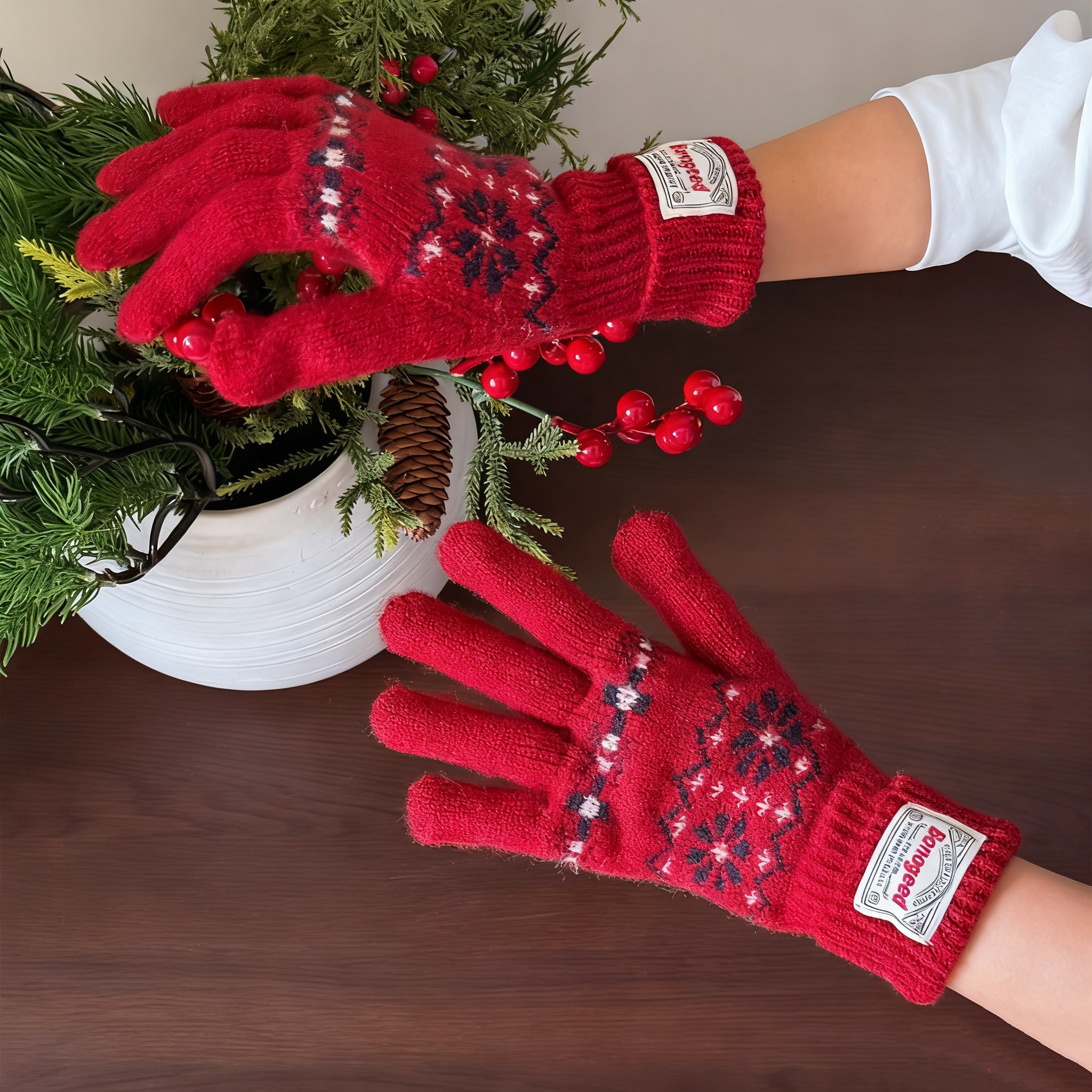 Fair Isle Pattern Wool Gloves for Women – Premium & Warm