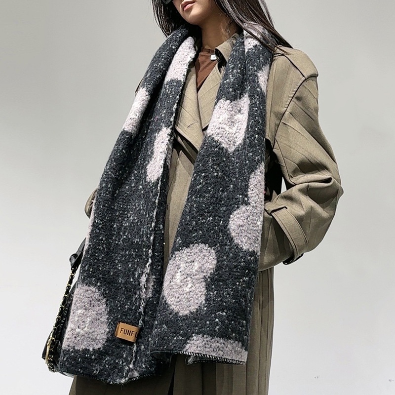 This heart smiley jacquard scarf features a thick knit construction that provides excellent warmth while remaining soft and comfortable. The playful heart and smiley pattern adds a cheerful touch to winter outfits. Warm yet not bulky, it’s perfect for everyday wear, commuting, or casual winter styling.