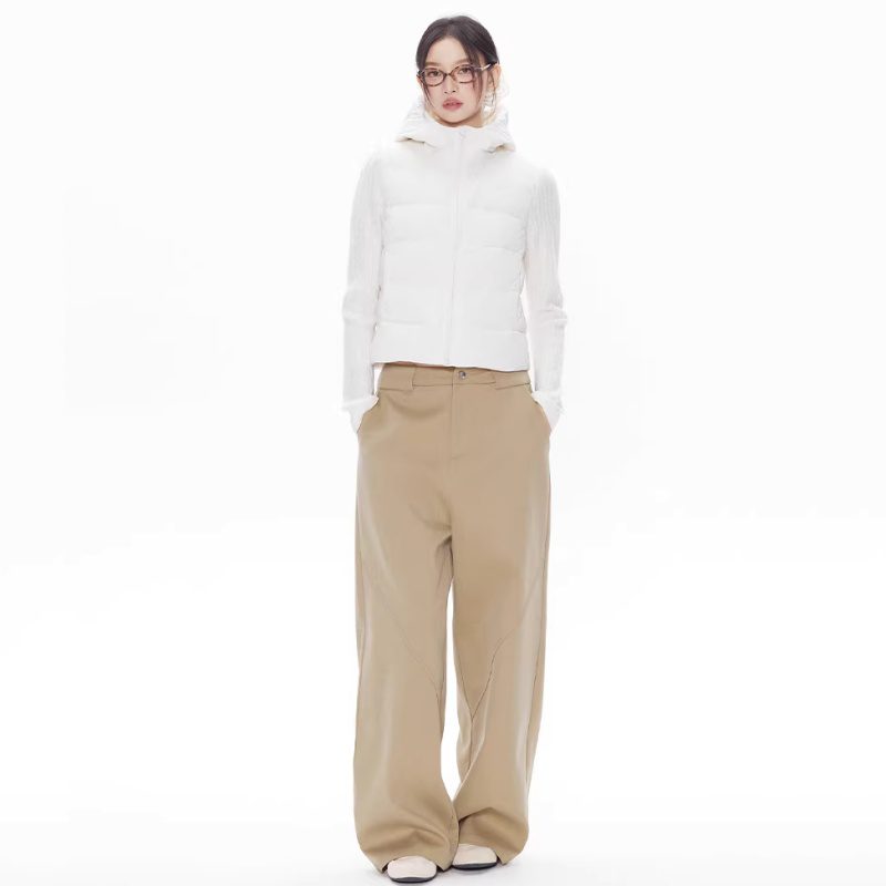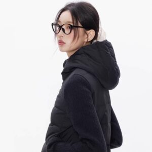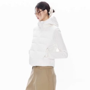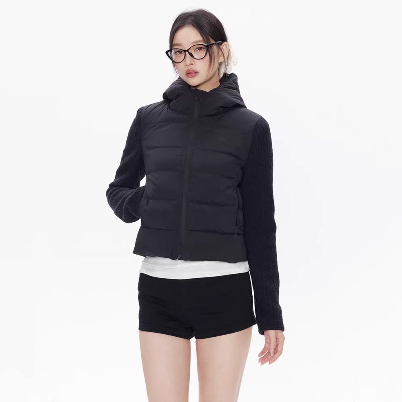 Lightweight Knitted Patchwork Slim Fit Down Jacket with Hood | 90% White Duck Down Winter Coat