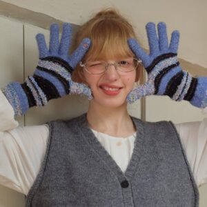 These patchwork striped knit fingerless gloves are soft, warm and comfortable, perfect for daily fall and winter wear.
