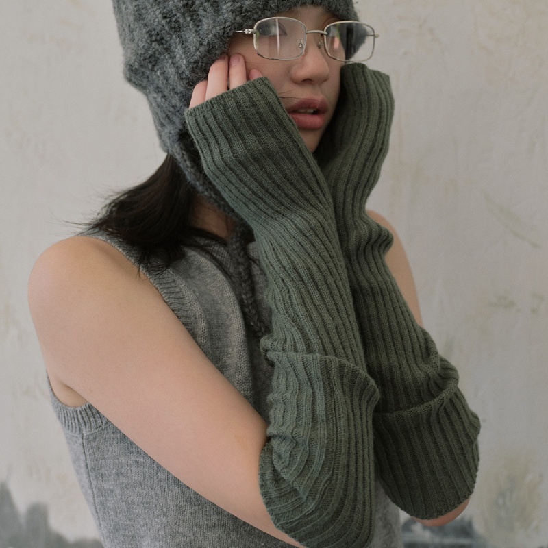 Solid Color Knit Button Arm Warmers Women Winter Fake Sleeves