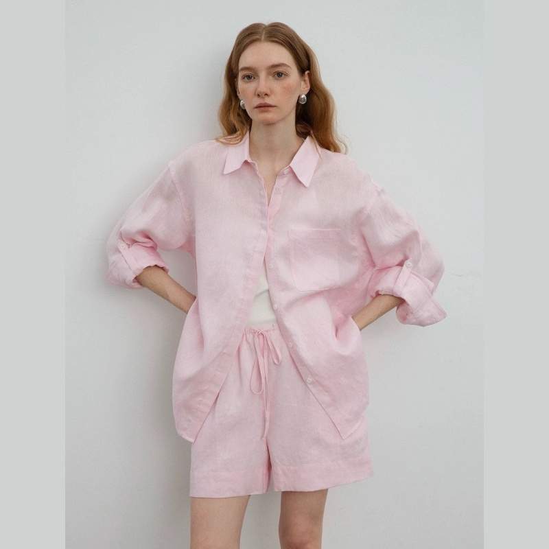 This solid color linen oversized shirt for women is crafted from breathable linen fabric, offering a lightweight and comfortable feel. The clean solid design combined with a relaxed oversized silhouette creates a timeless, effortless look.