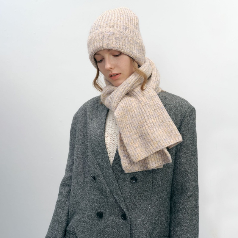 Solid Color Wool Blend Knit Hat and Scarf Set for Winter