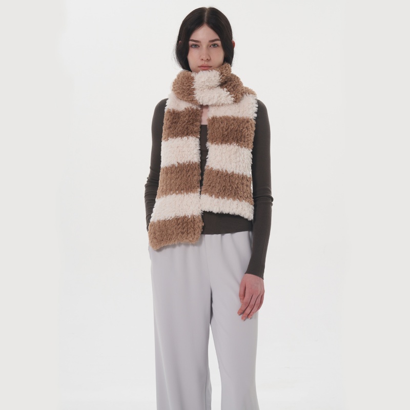 This striped two-tone plush scarf is soft, cozy, and warm.