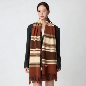 This striped wool knit plush neck warmer scarf is crafted from a soft wool-blend knit plush fabric, offering warmth and comfort without irritation. The classic striped design is easy to style, while the neck warmer style ensures easy wear for fall and winter outings.