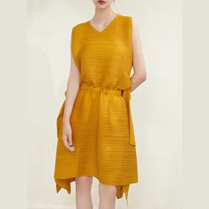 Summer High-End Pleated Sleeveless Backless Midi Dress for Women Custom pleated dress design