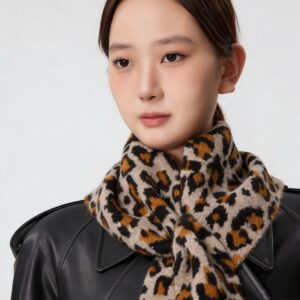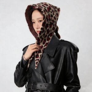 This vintage wool triangle scarf features a jacquard pattern with a soft, warm texture. The triangle shape fits comfortably around the neck, providing cozy coverage and a refined retro look for winter outfits.