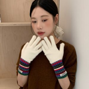 These women’s color-block striped knit gloves offer soft warmth with a thick knitted texture, perfect for winter commuting and daily wear. Stylish color contrast combines comfort and warmth for a cozy winter experience.