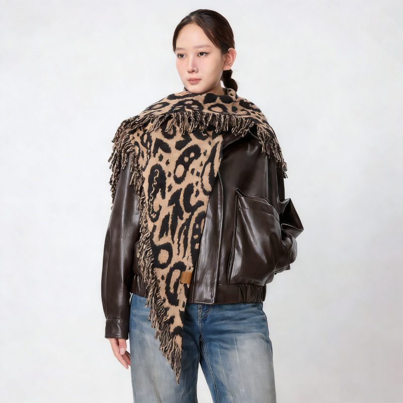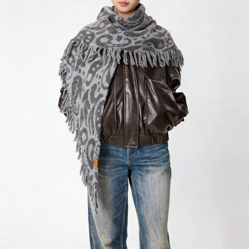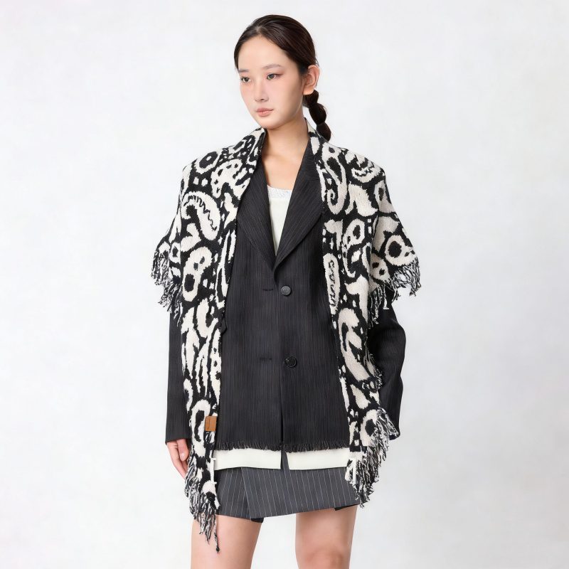 This women’s fringed wool knit scarf is made from a soft wool-blend knit fabric with a thickened design for warmth and comfort. The scarf-and-shawl dual use adds versatility, while fringe details enhance the overall style, perfect for fall and winter wear.