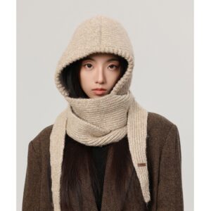 This integrated knit hat with a built-in scarf is crafted from soft, thick yarn, combining the functions of a hat and scarf in one convenient piece. The stretchy knit fits snugly around the head and neck, offering excellent wind protection. The fabric is cozy, skin-friendly, and resistant to pilling—perfect for winter commuting, everyday outfits, and outdoor activities.