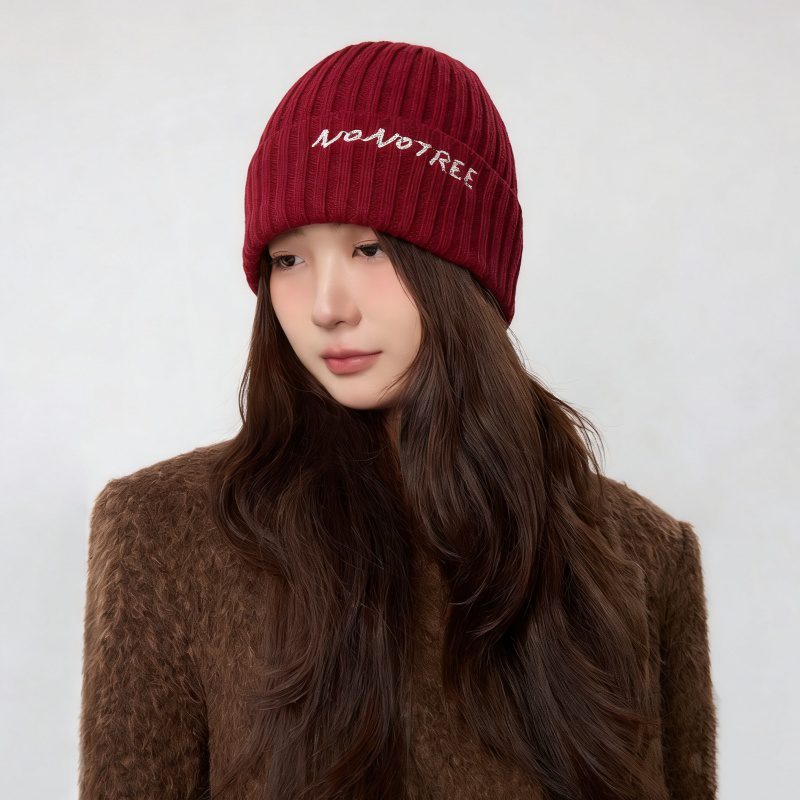 Women’s Letter Knit Beanie – Solid Color Warm Winter Hat