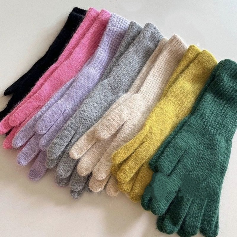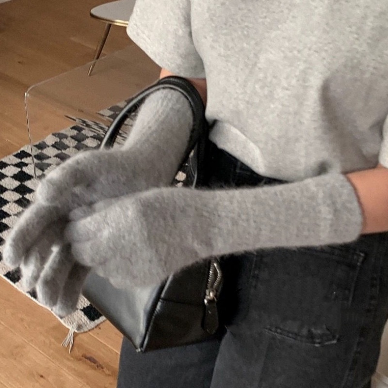 These long rabbit-hair knit gloves provide excellent warmth and extended coverage for better cold protection. The simple solid-color design makes them easy to match, perfect for winter commuting and outdoor activities.