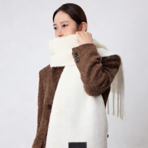This women’s solid color fringe wool scarf is crafted from a thick wool-blend fabric for warmth and comfort. Featuring a minimalist design with delicate fringe details, it can be worn as a scarf or a shawl, making it a versatile accessory for fall and winter outfits.