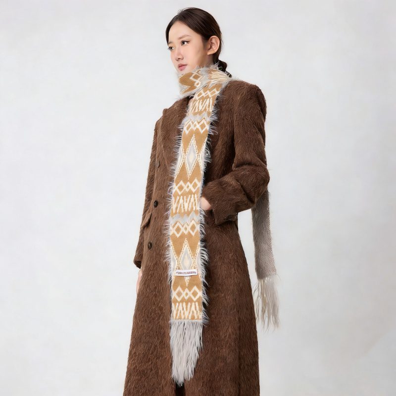 This women’s vintage knit scarf is crafted from soft, cozy fabric to provide warmth without bulk. Its timeless design pairs effortlessly with coats and jackets, making it a stylish and practical accessory for winter wear.