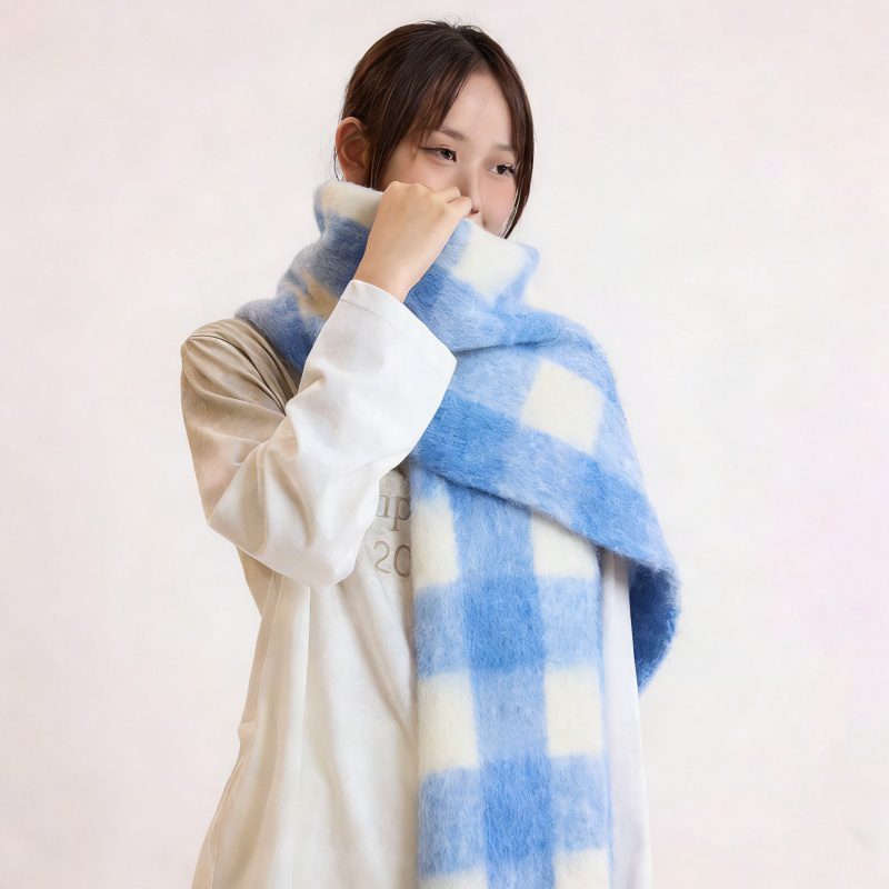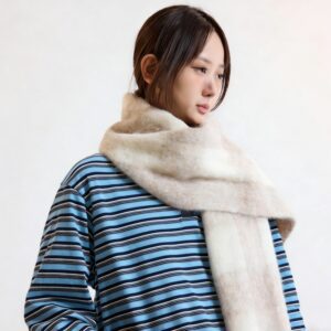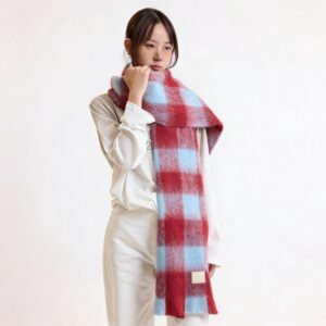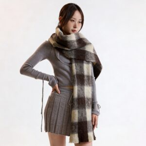 This women’s winter wool scarf features a classic plaid and color block design. Soft and warm, it offers stylish versatility for daily wear, commuting, and cold-weather outfits.