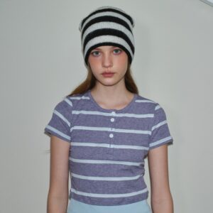 Be the first to review “Wool Blend Striped Knit Beanie Hat for Women | Winter Warm Cap”
